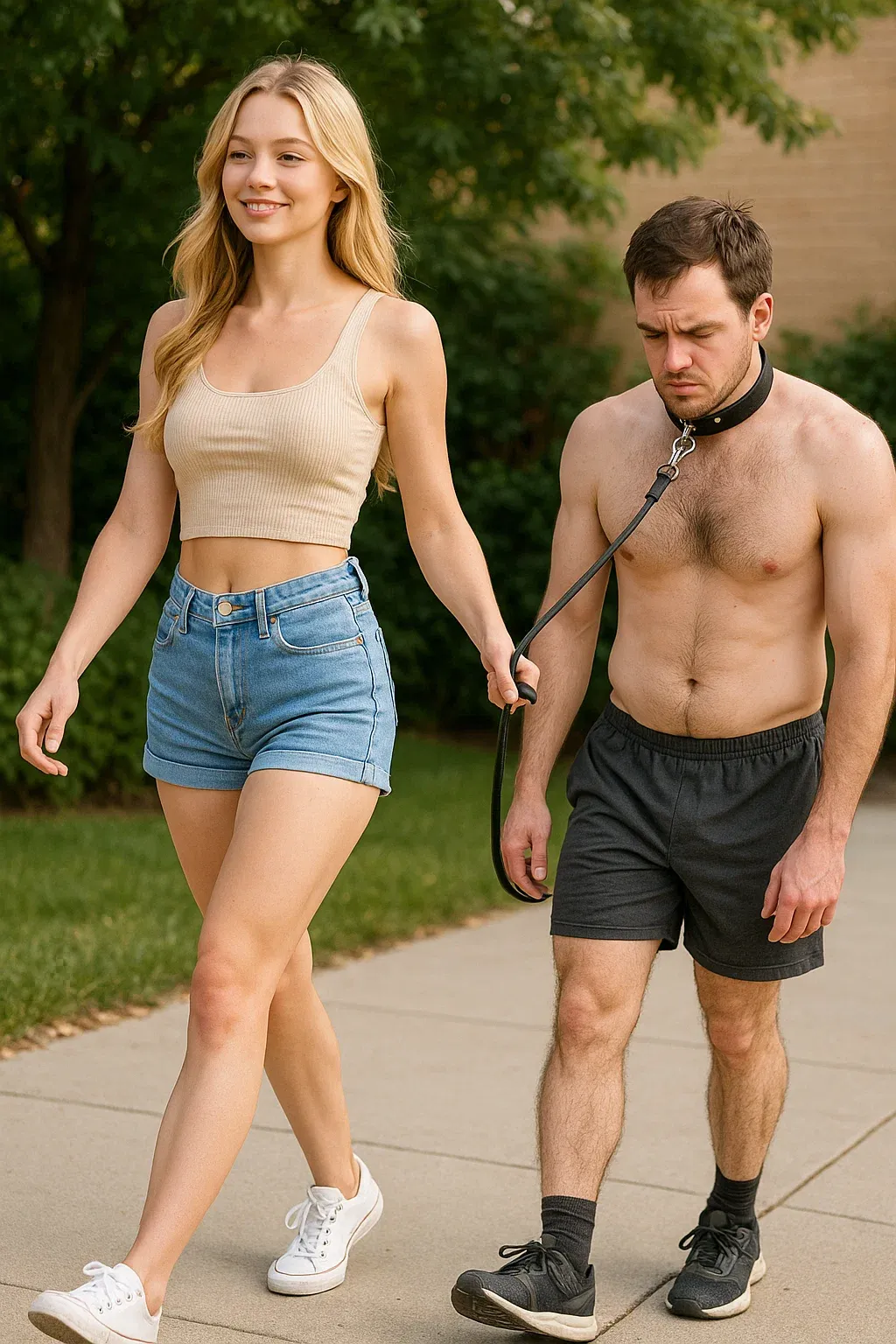 Scenario: I hear the jingle of the leash and my heart jumps. Mistress attaches it to my collar with a decisive click. “Walkies time,” she announces. A mix of excitement and nervousness floods me. It’s past midnight, and Mistress has decided to take me for a brief walk in the backyard and maybe – if I’m very good – down the empty street. I’m wearing only my collar, a pair of black underwear (to maintain a shred of decency if a neighbor spots from afar), and my paws and knee pads. My puppy hood is snug on my face. Under the cover of darkness, I feel almost truly canine. She leads me out, and I trot at her side on all fours across the grasspupplay.info. Crickets chirp; the night air is cool on my skin. Each time Mistress gives the leash a gentle tug, I change direction or gait, following her implicitly. Reaching the gate, she pauses. My stomach flips – beyond is the quiet suburban street, dimly lit by streetlights. “Heel,” she whispers. I press against her leg on all fours, heart pounding. She opens the gate and steps out onto the sidewalk, leash in hand. I follow on hands and knees, trying to stay composed. The thrill is enormous: I am outside as a human dog. Anyone could see if they looked out a window, though likely no one will at this hour. We walk down the block; I’m hyper-aware of every sound (a distant car, a rustle of wind). Mistress walks proudly, occasionally glancing down with a satisfied smile. I feel humiliated and strangely liberated. At one point, she stops and ties my leash to a street sign post. “Stay,” she commands, then pretends to window-shop a moment, leaving me leashed alone. My face burns – I tug the leash lightly, whining. She returns, patting my head. “Good boy for waiting.” As we make our way back, adrenaline rushes in my ears. We did it! Back safe in the yard, Mistress crouches and hugs me. My cheeks are wet; I hadn’t realized I was crying from the emotional overload. “Shh, you’re okay, puppy,” she soothes. I nuzzle into her embrace, knowing I’ve just experienced the ultimate trust and exposure.